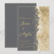 Classy luxury gold sparkle glitter Wedding invitation. Set against a grey background,
