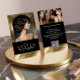 Showcase your salon brand with the Luxury Hair Stylist Salon Arch Photo Black Gold Business Card, designed for a refined, modern, and high-end aesthetic. The front features an elegant arch-shaped photo space to display your stylish portrait, layered over a subtle background image with soft opacity and a rich black-and-gold color overlay for a luxe, sophisticated look. Easily upload your own logo or salon name to personalize the design and create a strong, memorable brand presence. The reverse side highlights a stylish three-photo gallery—perfect for showcasing hair transformations, signature styles, client results, or salon work. Each image features a soft cascading ombré effect, creating a cohesive and fashion-forward visual flow. Customize with your contact details and a QR code for quick access to online booking, your website, or social media. Ideal for luxury hair stylists, salon owners, colorists, bridal hair artists, and beauty professionals seeking a sleek, upscale business card that leaves a lasting impression. Design by © Moodthology Papery