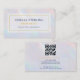 A chic holographic brow artist business card featuring a shimmering iridescent pearl background with elegant gold accents. Perfect for brow artists, microblading specialists, and beauty professionals who want a modern, luxury design to showcase their services. Fully customisable with your name, job title, contact details, QR code, and social media links — the ideal branding card to impress clients and elevate your beauty business.