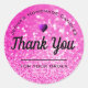 Luxury Hot Pink Glitter Elegant Simple Thank You Classic Round Sticker