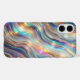 A breathtaking and vibrant phone case design featuring a magical iridescent agate texture. Flowing waves of rainbow colours—teal, purple, gold, and pink—shimmer with a holographic glow, intertwined with elegant sparkling gold veins. This sophisticated abstract art provides a radiant and high-end aesthetic for your smartphone.