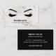 This modern and sophisticated business card design features a glamourous , minimalistic illustration of a woman's eyelashes over a stunning Marble background with bold name or business name and title.