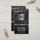 Luxury Marble | Silver Metallic Monogram Business Card.