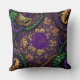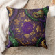 Luxury Mardi Gras Carnival Pillow with ornate Masquerade masks, beads and Fleur-de-Lis Pattern for celebration. The swirling ornamental patterns add a sense of motion and festivity, reminiscent of dancing crowds, lively music, and floating confetti. In the center is text that can be personalized with your Name or Monogram. You can also remove it if you want only the pattern.