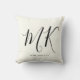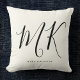 Chic and stylish, this modern monogram thorw pillow in ivory and black is a sophisticated minimalist design that combines your monogram in a hand lettered script along your name in elegant serif typography.