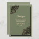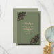 Express your gratitude with timeless elegance using this sage green thank you card. The design features a serene sage green background adorned with luxurious faux metallic gold floral blocks, adding a sophisticated touch to your message of thanks.