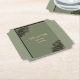 Elevate your event with these stylish sage green paper coasters. Each coaster features a sophisticated design with a serene sage green background adorned with luxurious faux metallic gold floral blocks.
