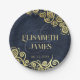 Luxury Navy Blue And Gold Flourish Winter Wedding Paper Plate