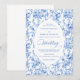 Make a refined first impression with this wedding invitation featuring classic French toile de jouy roses in elegant shades of navy blue, royal blue, dusty blue, and deep blue. Inspired by timeless European floral design, this invitation blends traditional sophistication with modern elegance, perfect for a classic, romantic, or formal wedding celebration.