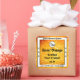 Make a lasting impression with this elegant and modern product label design featuring a bright orange coloured small to large glitter graphic with sparkling stars. The pretty white square border matches with a golden shimmery frame and diamonds.