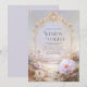 Invite your guests through a magical gateway with this exquisite wedding invitation, defining your celebration with opulent romance and ethereal beauty. The design centers on a spectacular, luminous gold baroque arch detailed with intricate scrollwork and delicate pink floral accents, suggesting a royal entry. This arch frames a serene misty landscape with distant mountains and a tranquil, reflective body of water, all bathed in soft, twilight light. Lush clusters of velvety pink and white peonies and wildflowers anchor the foreground, creating a beautiful, overflowing garden border. The aesthetic beautifully merges antique, intricate luxury with soft, romantic botanical splendor, perfectly setting the stage for a luxurious, fairytale-themed wedding. This invitation card is ideally suited for a luxury baroque-themed wedding, a high-end formal engagement celebration, or a garden-themed anniversary party. It would also perfectly suit a sophisticated bridal shower or a serene, elegant vow renewal ceremony. The card's captivating blend of ornate gold accents and ethereal florals ensures it is versatile for any solemn ceremony, corporate gala, or refined birthday announcement.