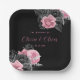 Luxury Pink and Black Floral Inking Wedding Paper Plate