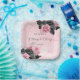 Luxury Pink and Black Floral Inking Wedding Paper Plate