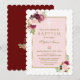 Luxury Pink Burgundy Saffron Flowers Gold Baptism Invitation