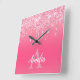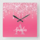 Luxury Pink Glitter Drips Add Your Own Monogram Square Wall Clock