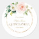 Luxury Pink White Flowers Gold Quinceañera Classic Round Sticker
