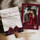 Luxury plaid Burgundy Bow Winter Photo Wedding Invitation