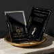 Make a lasting impression with our elegant luxury real estate business card design by ©Moodthology Papery. The front of the card features a full photo background for you to replace with your own image — perfect for showcasing your professional portrait or branded lifestyle photo. A sleek black overlay box adds depth and contrast, enhanced by elegant faux gold corner frames that highlight the edges for a luxurious touch. A stylish faux gold monogram box allows you to add your initials, while your business name and tagline can be customized for a fully branded presentation.