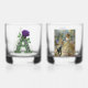 Elevate your home bar with this exquisite set of two rocks glasses from the AlexDizaine Luxury Collection. One glass features a sophisticated "A" monogram adorned with a mystical purple rose, while the other showcases a stunning golden silhouette of a Victorian lady, evoking timeless elegance. Crafted for those who appreciate art in every sip, this set makes a perfect wedding, anniversary, or housewarming gift. Unique, artistic, and designed with passion.