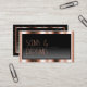 Make a lasting impression with this elegant and luxurious business card design featuring a shimmery rose golden frame and fine rose gold decor stripes with a modern black gradient background.