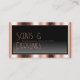 Make a lasting impression with this elegant and luxurious business card design featuring a shimmery rose golden frame and fine rose gold decor stripes with a modern black gradient background.