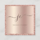 Luxury Rose Gold Glitter & Foil Script Monogram Square Business Card