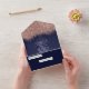 The elegant, glamourous, and modern wedding invitation and rsvp bundle is perfect for the contemporary and stylish engaged couple. It features a faux printed rose gold sparkly glitter confetti speckled colour block on top of a simple dark navy blue background. The back displays the same glitter but a thicker panel above a special message from the bride and groom, which can be customised or deleted. This chic, luxury, and unique design will be a hit with all of your guests!