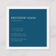 Square ocean blue and white business card with a professional classic touch of a luxurious monogram initials script signatured name and career in front, business name, profession and full details in back, perfect for real estate, realtors, accountancy, consultancy and any profession.