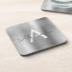 Luxury Silver Foil Brushed Metal Monogram Name and Initial Coaster. The makes the perfect gift for someone looking for a modern monogram Coaster for a party or celebration.