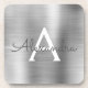 Luxury Silver Brushed Metal Monogram Name Initial Coaster