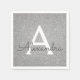 Luxury Silver Faux Glitter and Sparkle Elegant Monogram Birthday Party Napkins. This Birthday Party, Bridal Shower, Wedding, Baby Shower Napkin can be customised to include your initial and first name.