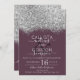 The elegant, glamourous, and modern wedding engagement party invitation is perfect for the contemporary and stylish engaged couple. It features a faux printed silver sparkly glitter confetti speckled colour block on top of a simple cassis plum purple background. The back displays the same glitter but a thicker panel above a special message from the bride and groom, which can be customised or deleted. This chic, luxury, and unique design will be a hit with all of your guests!