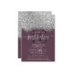 The elegant, glamourous, and modern sweet sixteen birthday party invitation is perfect for the contemporary and stylish young teenage girl. It features a faux printed silver sparkly glitter confetti speckled colour block on top of a simple cassis plum purple background with a large number "16" in a matching pink gold-tone. The back displays the same glitter but a thicker panel. This chic, luxury, and unique design will be a hit with all of your guests!