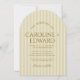 Luxury striped arched wedding invitation with elegant old money aesthetic. Minimalist yet sophisticated design in beige and gold tones, featuring a modern QR code back side option. Perfect for timeless, chic weddings.