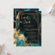 Luxury Teal and Gold Floral Agate Birthday Party Invitation