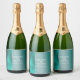 Luxury Teal Turquoise Silver Glitter Sparkling Wine Label