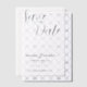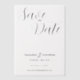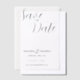 At the heart of the design, the words "Save the Date" are elegantly written in flowing, graceful calligraphy. The script is fluid, with delicate curves and a slight flourish that echoes both the modern and the classic. The choice of font is sophisticated and timeless, giving a sense of glamour while maintaining the invitation’s understated beauty.