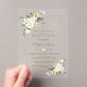 These Premium Acrylic invitations are perfect for creating lasting, exquisite impressions. Elegant card design featuring watercolour delicate white flowers corners, a faux gold glitter frame, confetti, faux gold cross, floral divider, on a transparent background. Use Personalise tool to add your info. For matching items, please, visit my Elegant Transparent Baptism Collection.