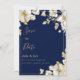 Luxury white gold floral navy blue Save the Date Invitation