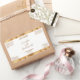 This elegant product label for cosmetic bottles features a white background with a faux gold foil border. This label contains space for your product name, business name, product weight, ingredients, instructions, social media, and business address. This label measures 4.5 inches by 2.7 inches and is available in glossy or matte finish.