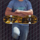 Luzes foscas de vela sob uma placa de gelo skateboard