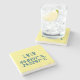 Modern stone coaster design features latitude and longitude coordinates for Lviv, Ukraine in distressed dark blue font on yellow background