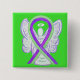 A lime green and purple ribbon ribbon means support for the combination of lyme disease and pain/ lupus/ fibromyalgia. The awareness ribbon pin features the painting of a lime green and purple awareness ribbon angel on a custom button pendant. The awareness angel pendant notes "Lupus & Lyme Disease Awareness". The lime green and purple awareness angel ribbon art lapel pins or buttons can be customised with personalised messages to make great cause buttons for fundraiser pendants, awareness pin gifts, or other special pendant events or awareness lapel pin for the cause's occasions.