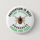 A Lyme Disease prevention button with a picture of a deer tick on it and text that says, 'Prevention is best, Lyme disease awareness, check for ticks."