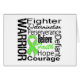 Lymphoma Warrior awareness t-shirts, merchandise & gifts featuring a collage describing the attributes of a cancer warrior. The design features text attributes of a warrior including the words Fighter, Determination, Perseverance, Believe, Faith, Hope, Defiant and Courage. This design is arranged in a cool distressed lime green ribbon, collage text with mixed style fonts providing a unique flair to the design element.