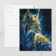 lynx bobcat bathed in blue yellowish neon light postcard