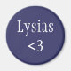A blue "Lysias" badge. Lysias was an ancient Greek speechwriter whose work includes "On The Murder of Eratosthenes". Anyone who has studied ancient Greek law will have heard of him and read some of his surviving work.