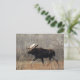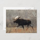 Bull Moose Postcard. A big bull moose lumbers through the scrub brush in a sand hills area of southeastern Alberta, Canada. Moose seem out of place in this dry, sandy terrain that has very little water to support the aquatic vegetation that moose usually feed on.