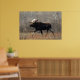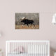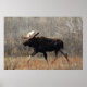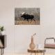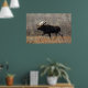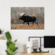 Bull Moose Poster. A big bull moose lumbers through the brush in a sand hills area of southeastern Alberta, Canada. Moose seem out of place in this dry, sandy terrain, that has very little water to support the aquatic vegetation moose usually feed on.