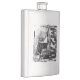 The product is a good size and came exactly as it was pictured. The lid is not attached to the flask, which could be dangerous on drunken nights... The print came out surprisingly well and looks very sharp. Would definitely recommend.